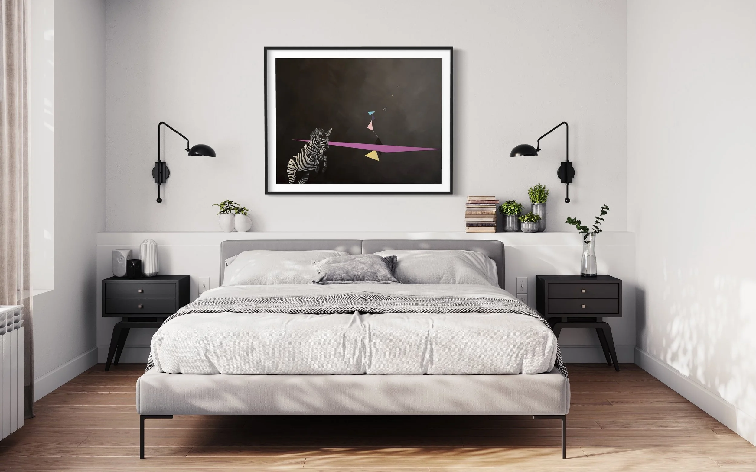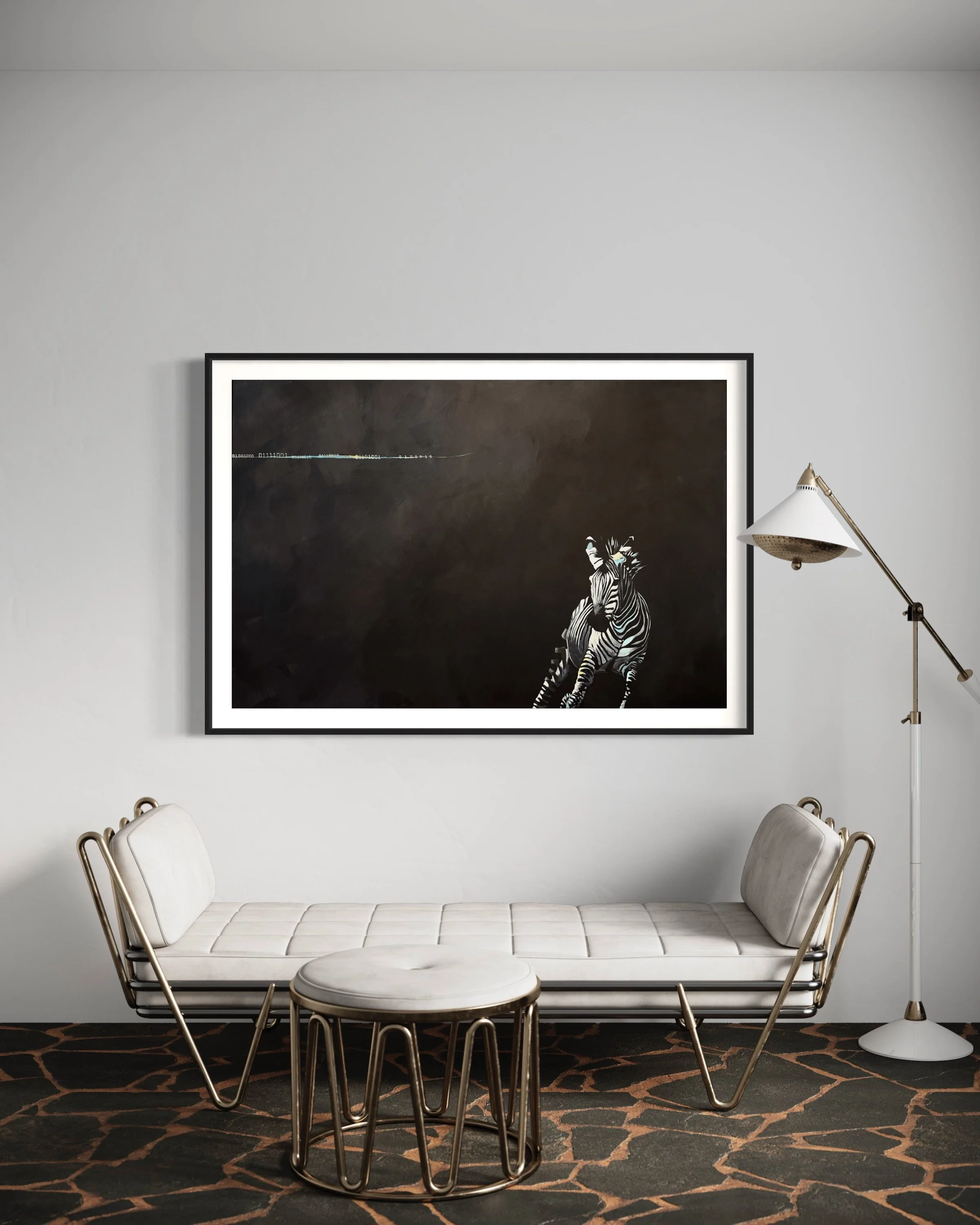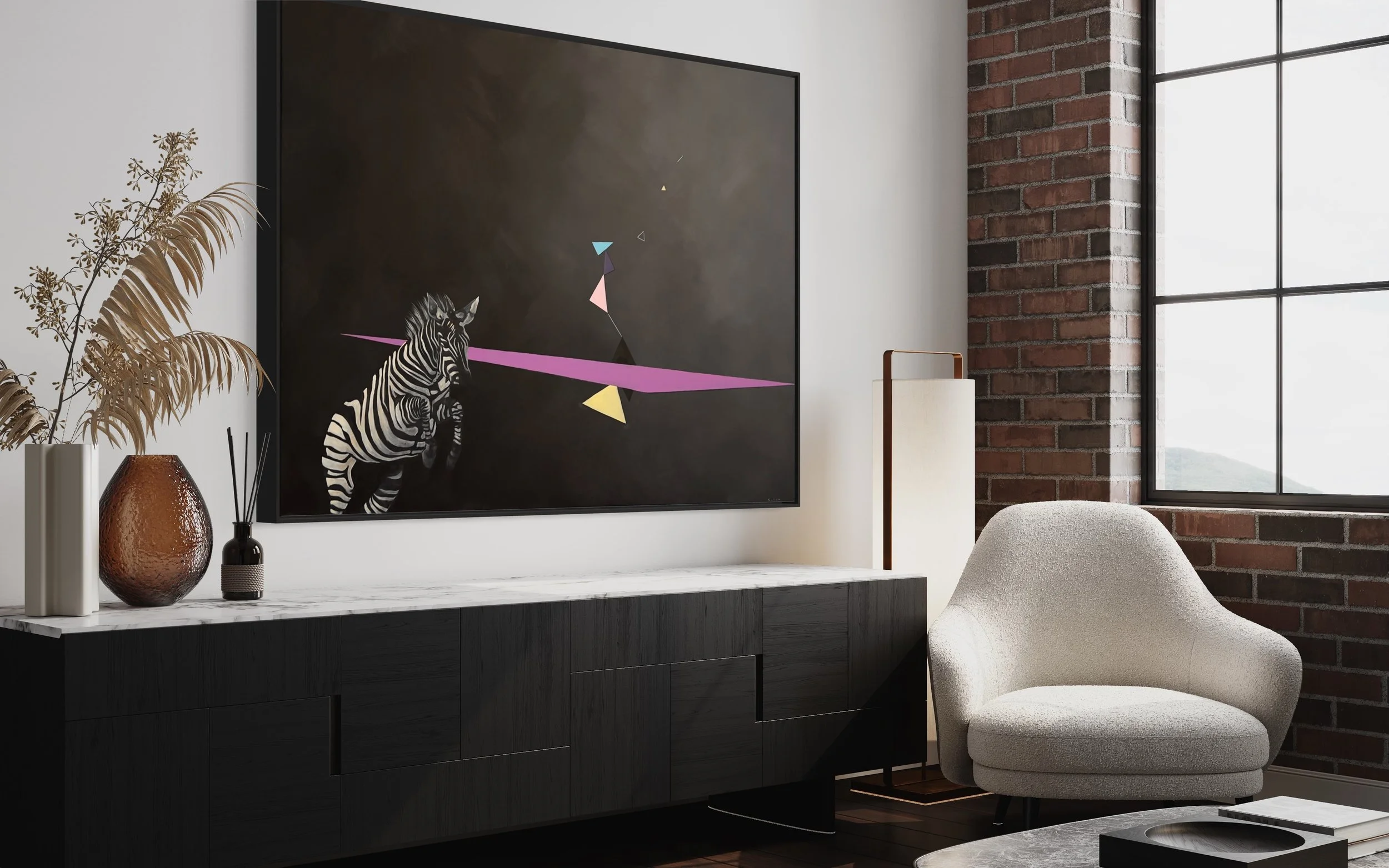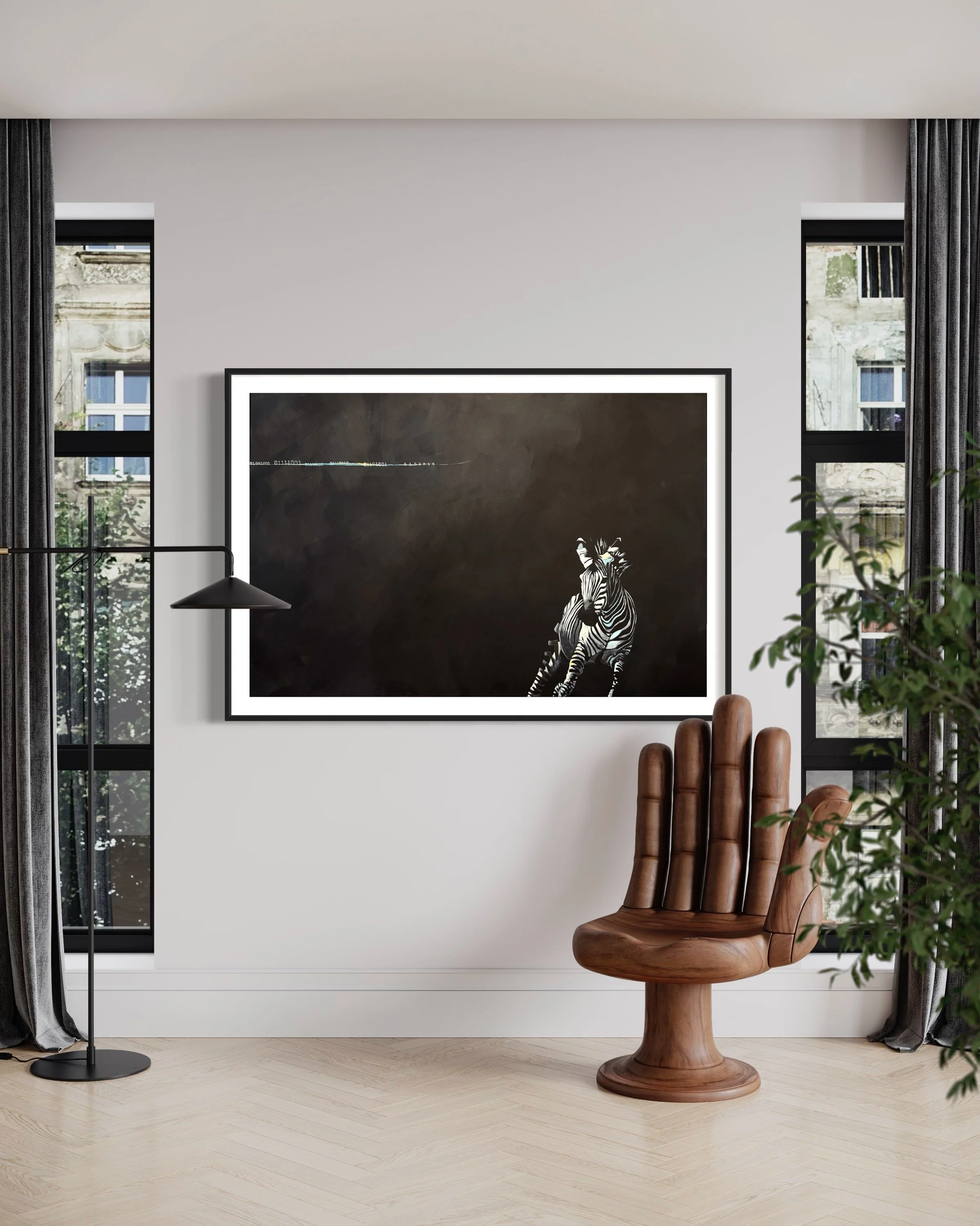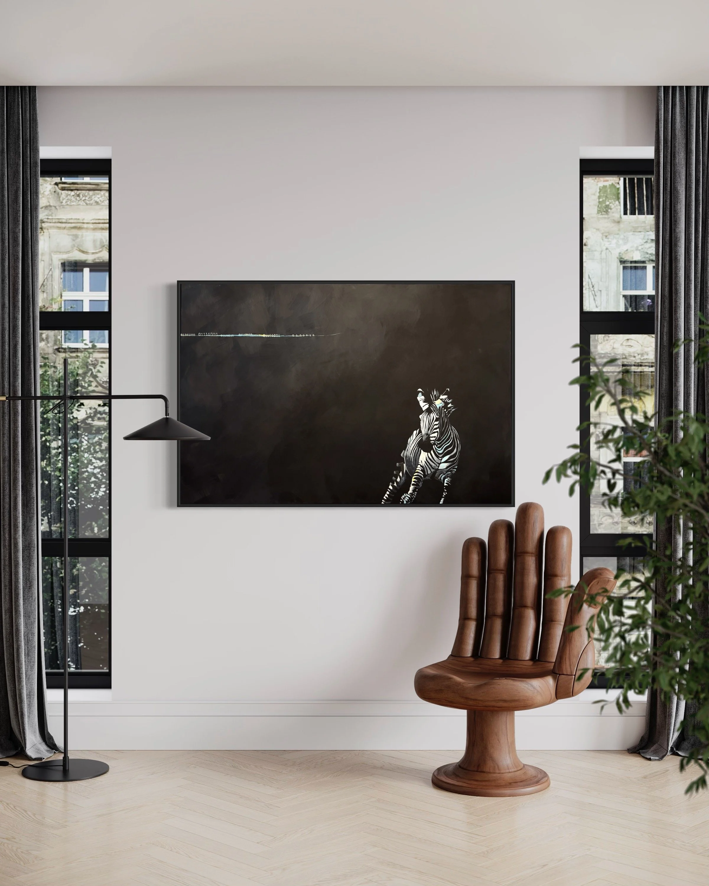 Oil and was on Canvas, 41.5”x61.5”x1.5”. Framed in black floater, ready to hang